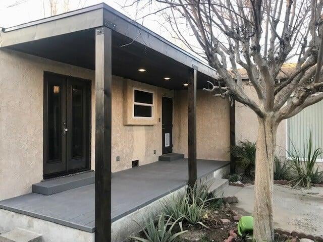 To make the living room bigger a client wanted the front door moved. We moved the door, added a window, and created a new front porch.